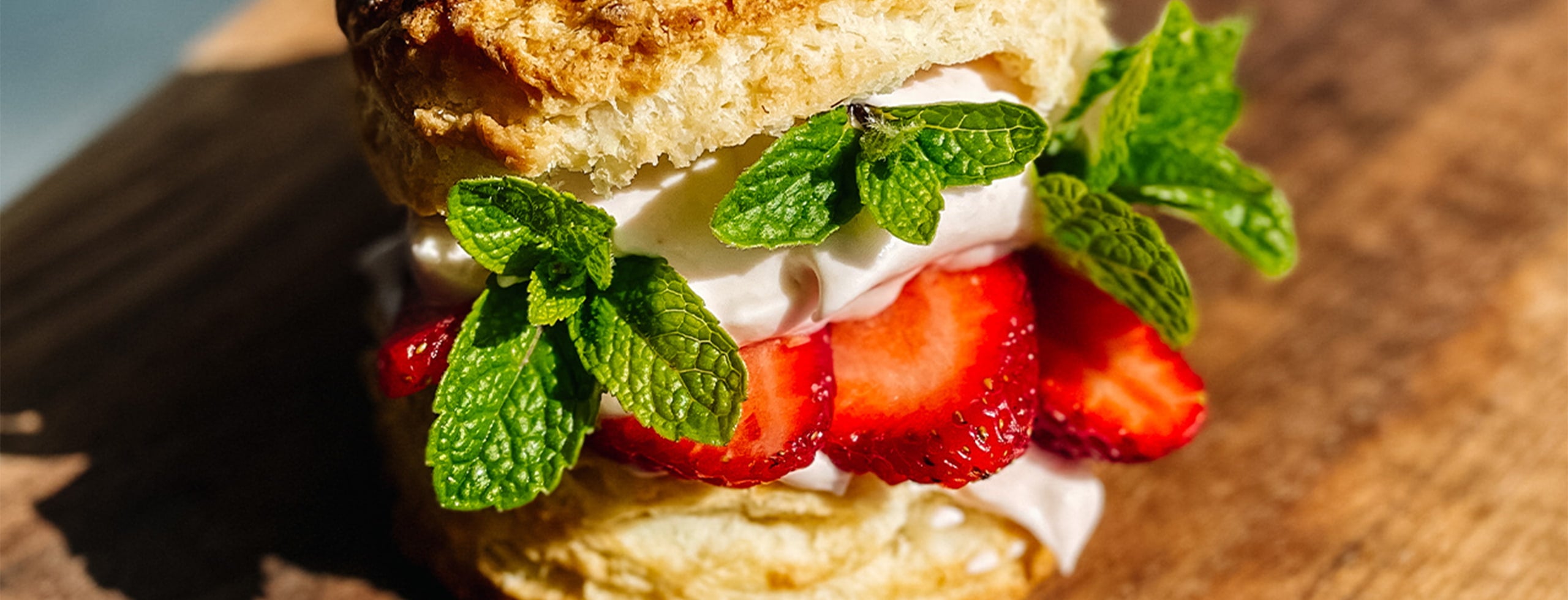 Black Pepper Biscuits with Macerated Strawberries and Vanilla Creme Fraiche