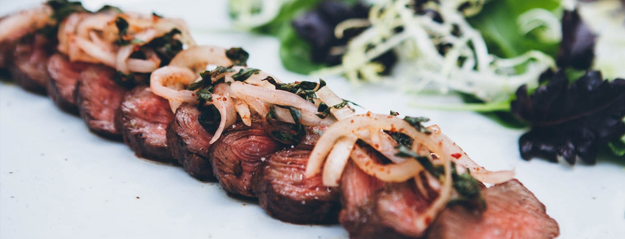 New York Steak with Za'atar Onions and Greens